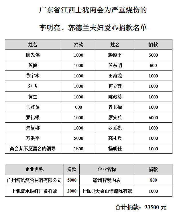 廣東博皓復(fù)合材料有限公司得知消息后,特批從公司愛心基金里捐出5000元,董事長賴厚平個(gè)人捐出5000元。